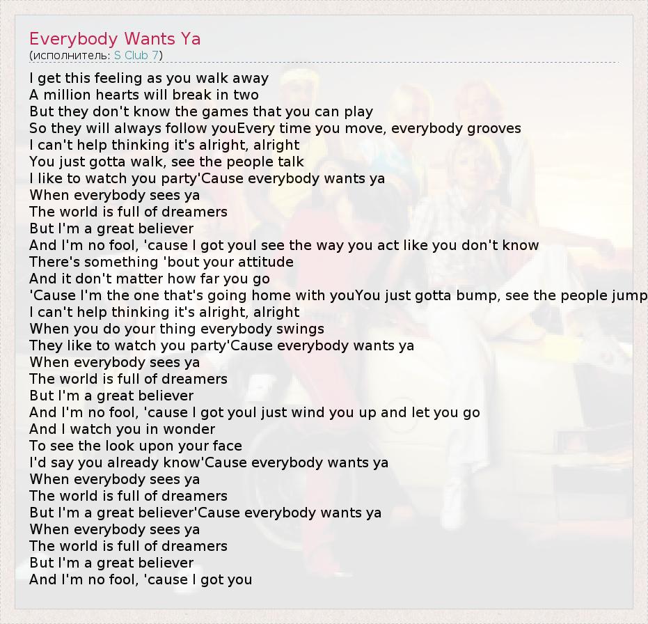 А как ты думаешь, о чем песня "Everybody Wants Ya" ?