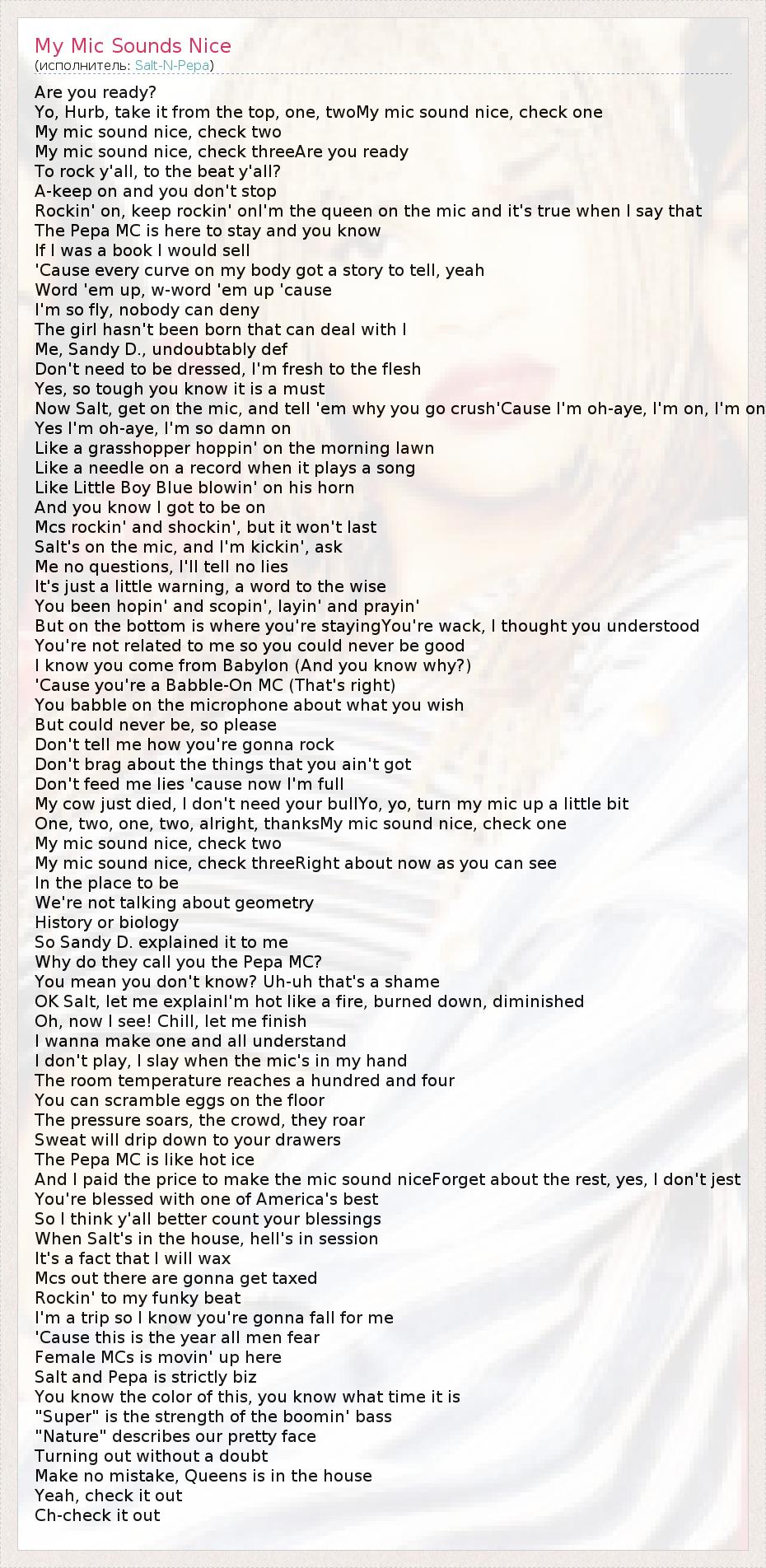 А как ты думаешь, о чем песня "My Mic Sounds Nice" ?