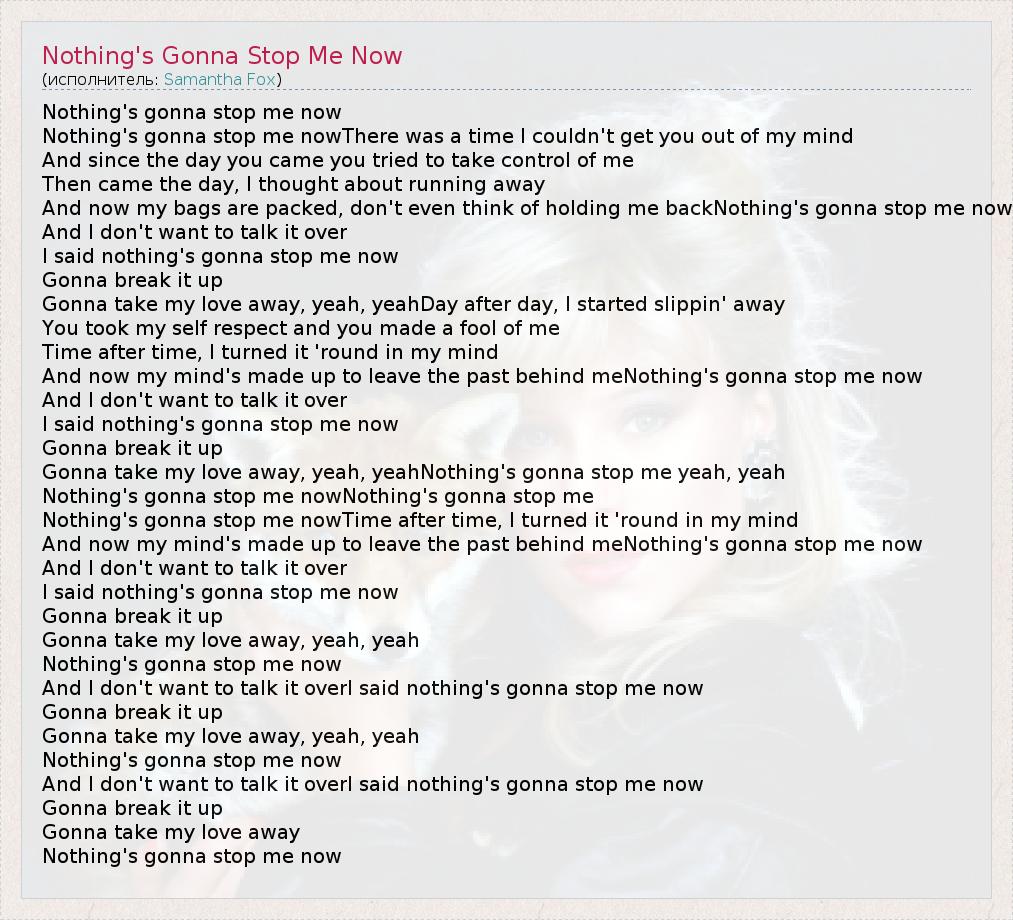 Nothing's gonna stop me nowNothing's gonna stop me