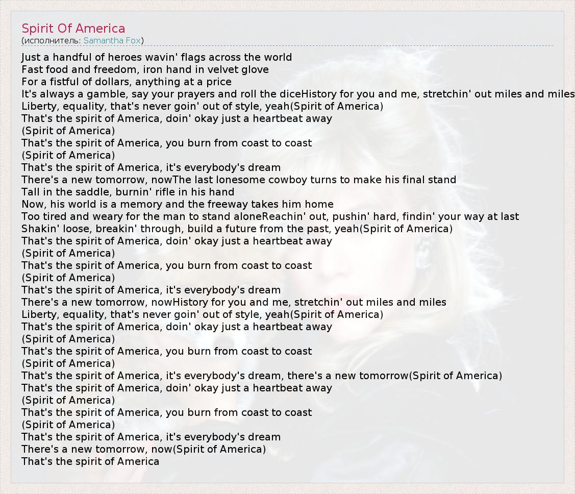 А как ты думаешь, о чем песня "Spirit Of America" ?