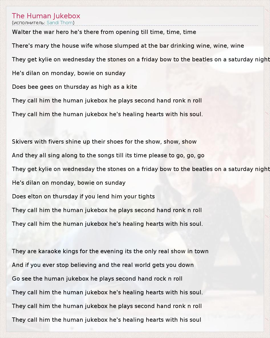 А как ты думаешь, о чем песня "The Human Jukebox" ?