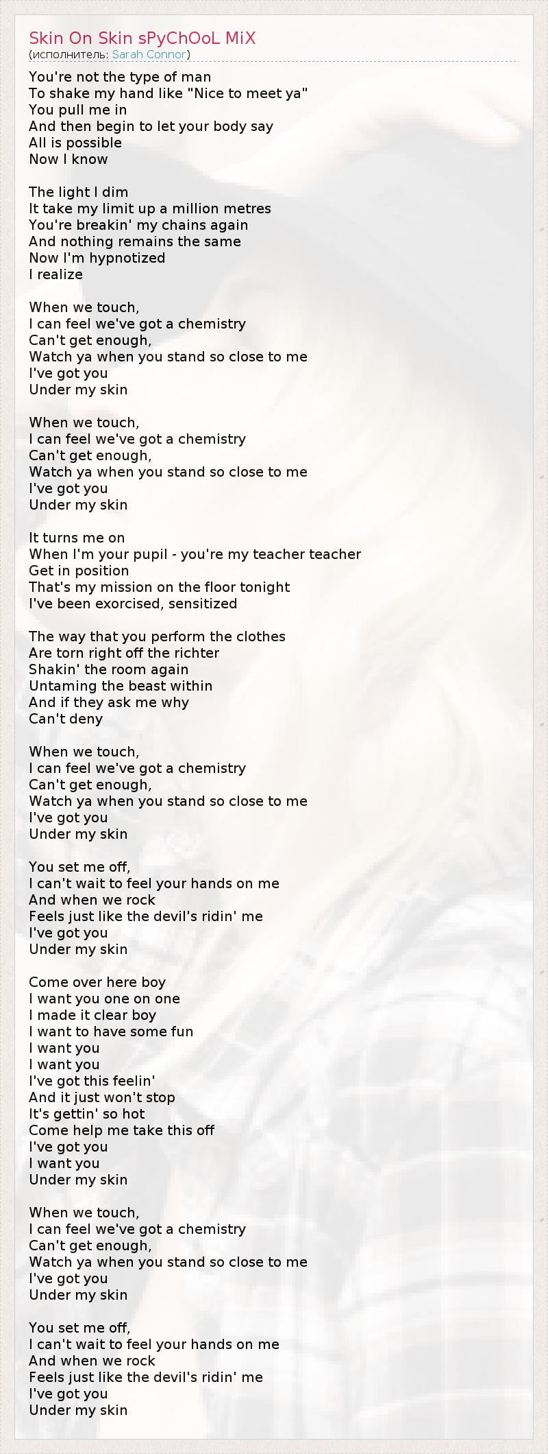 А как ты думаешь, о чем песня "Skin On Skin sPyChOoL MiX" ?