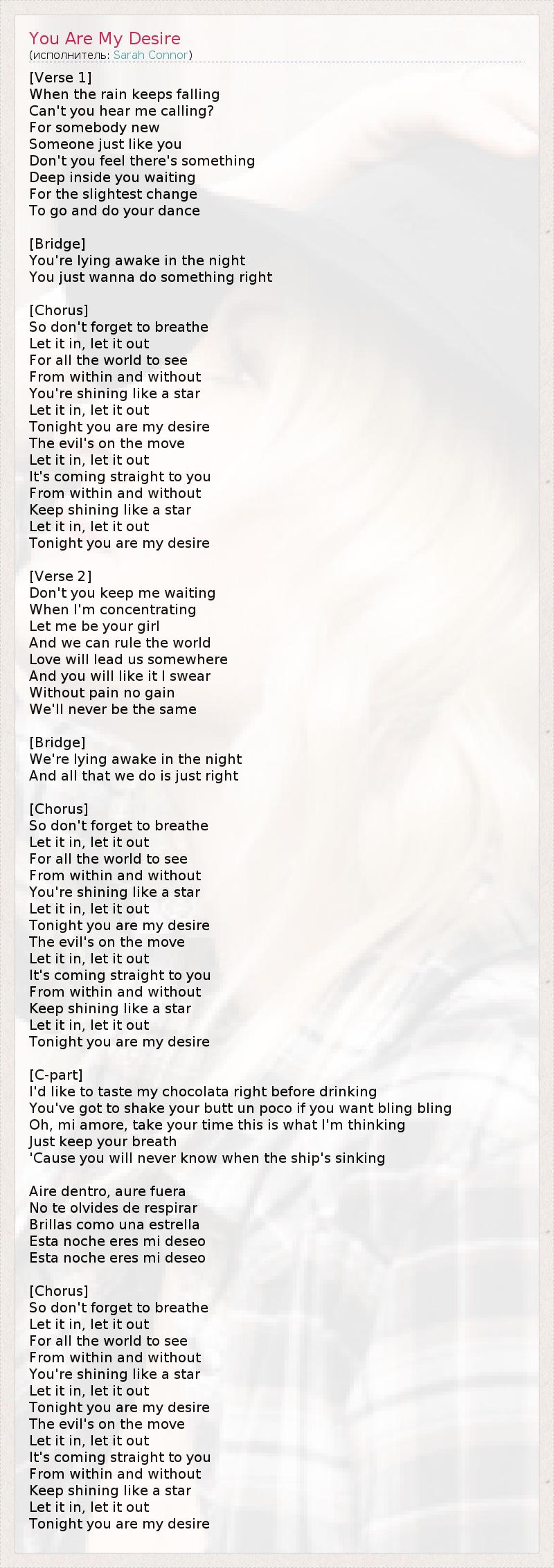 А как ты думаешь, о чем песня "You Are My Desire" ?