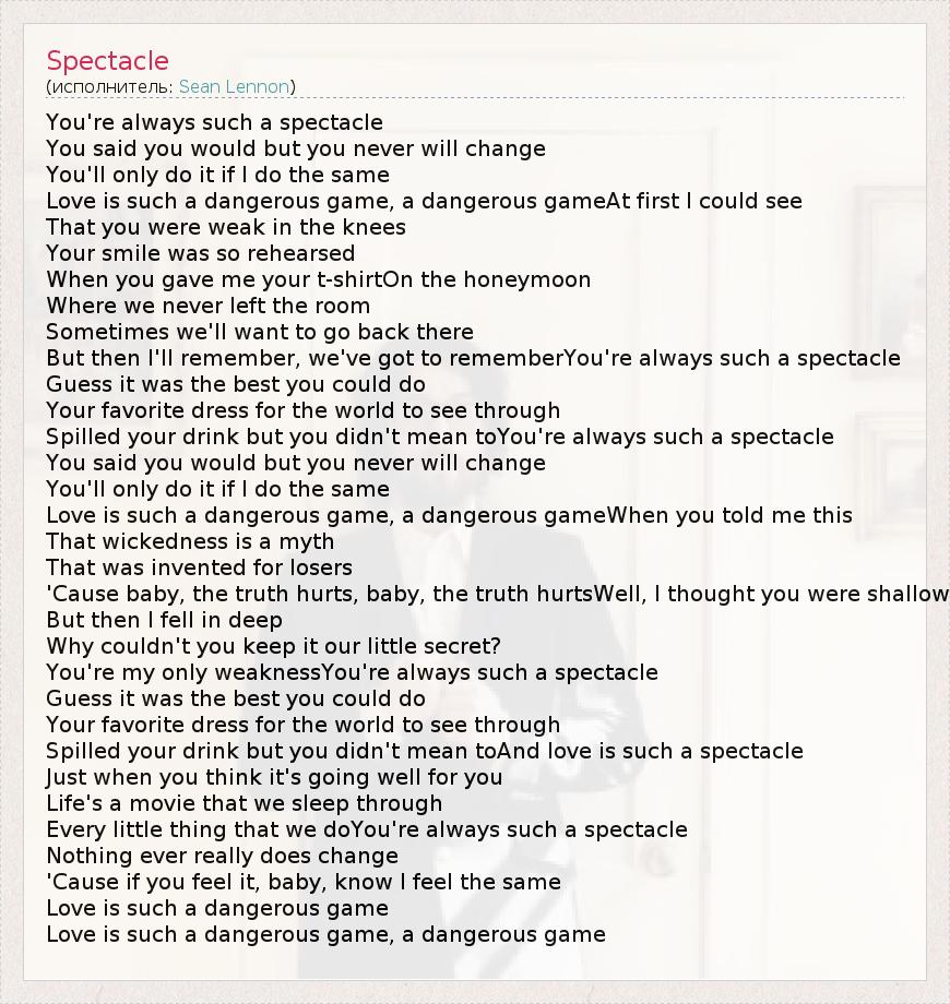 Spilled your drink but you didn't mean toAnd love is such a spectacle
