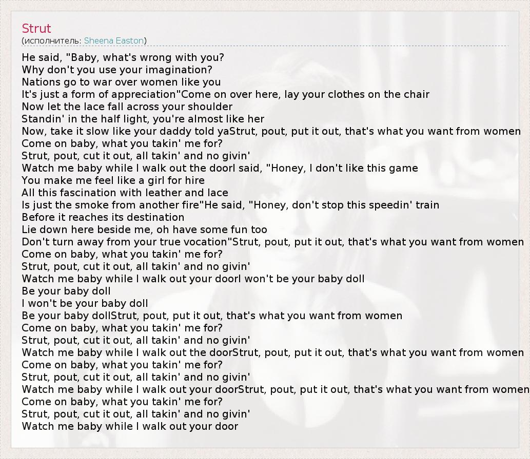 А как ты думаешь, о чем песня "Strut" ?