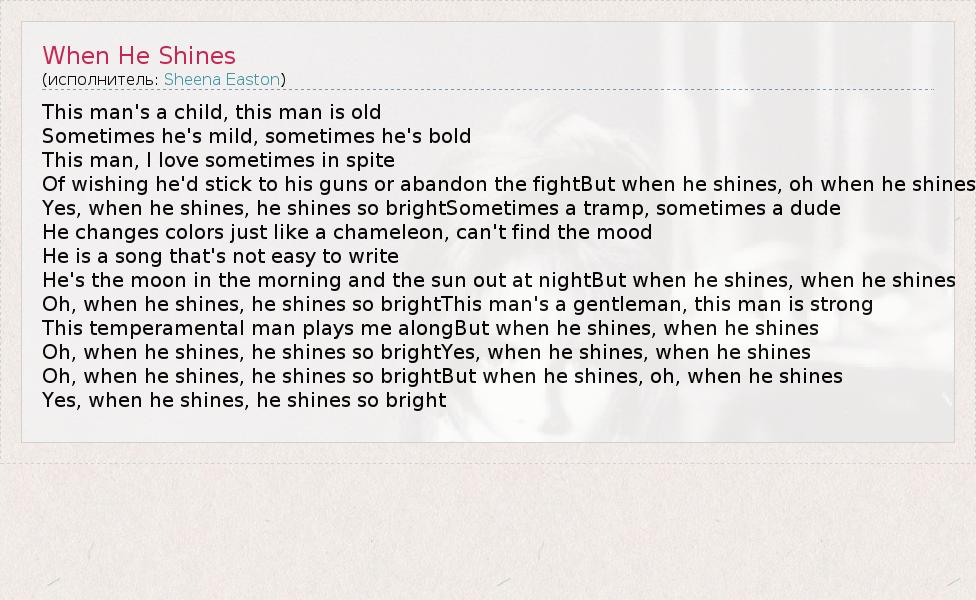 Oh, when he shines, he shines so brightBut when he shines, oh, when he shines