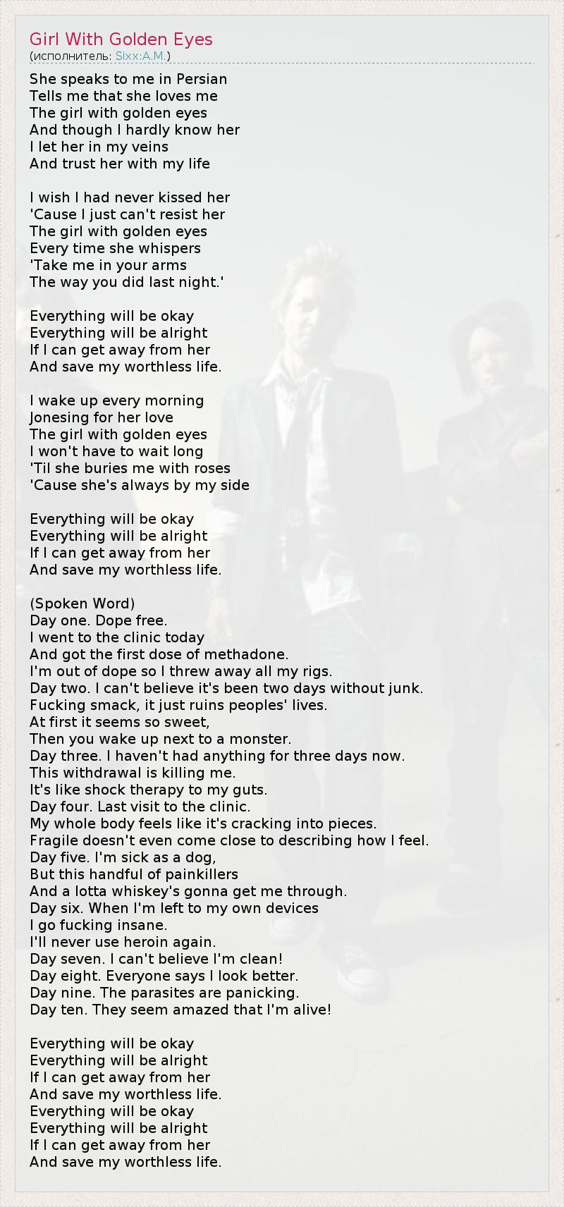 А как ты думаешь, о чем песня "Girl With Golden Eyes" ?