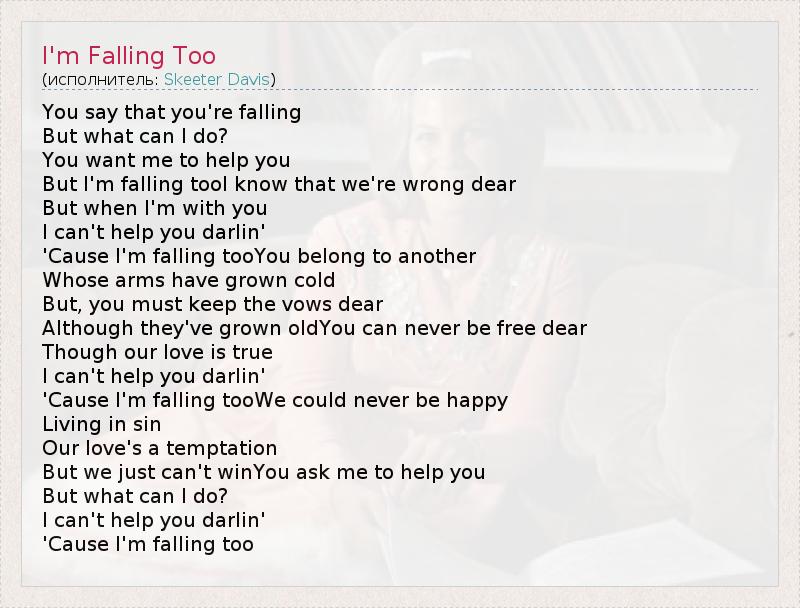 А как ты думаешь, о чем песня "I'm Falling Too" ?