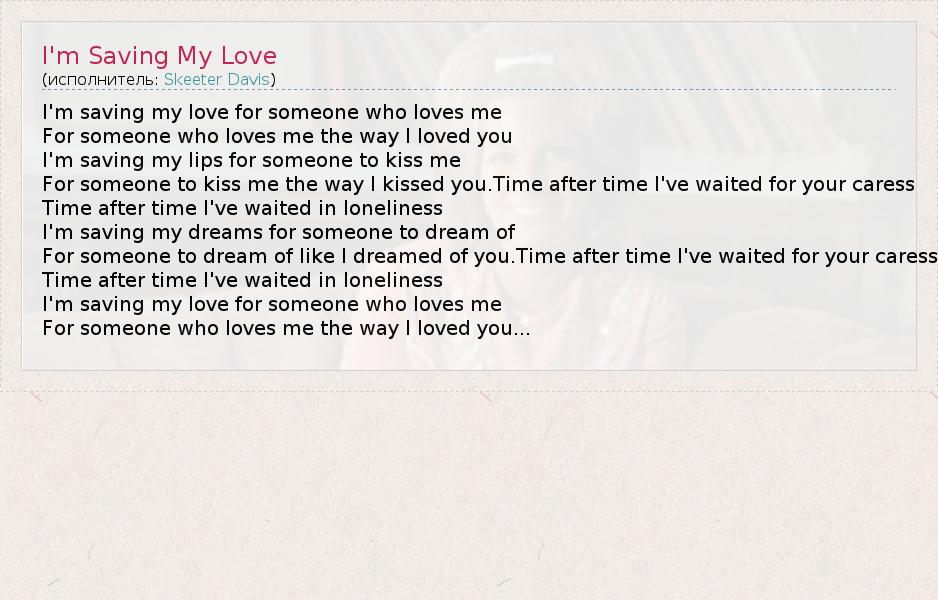 А как ты думаешь, о чем песня "I'm Saving My Love" ?
