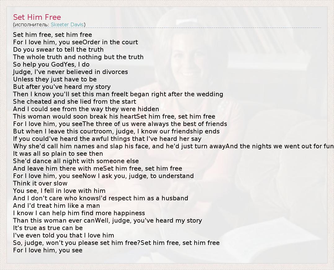 А как ты думаешь, о чем песня "Set Him Free" ?