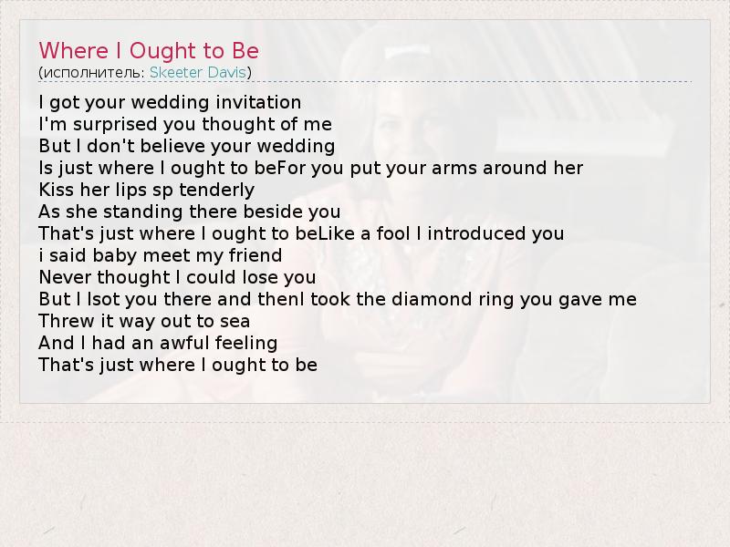А как ты думаешь, о чем песня "Where I Ought to Be" ?