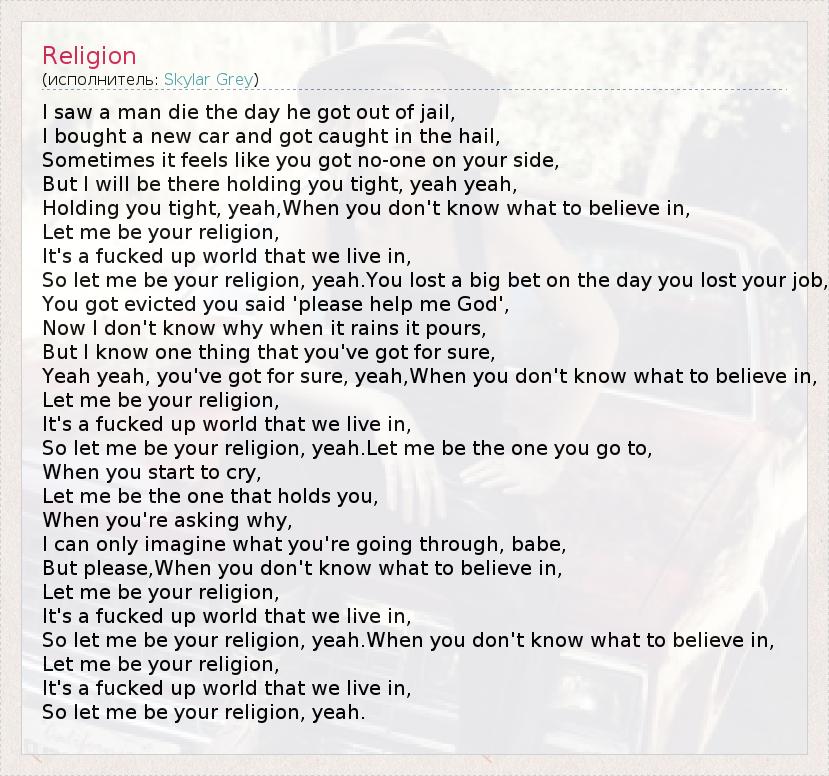 А как ты думаешь, о чем песня "Religion" ?