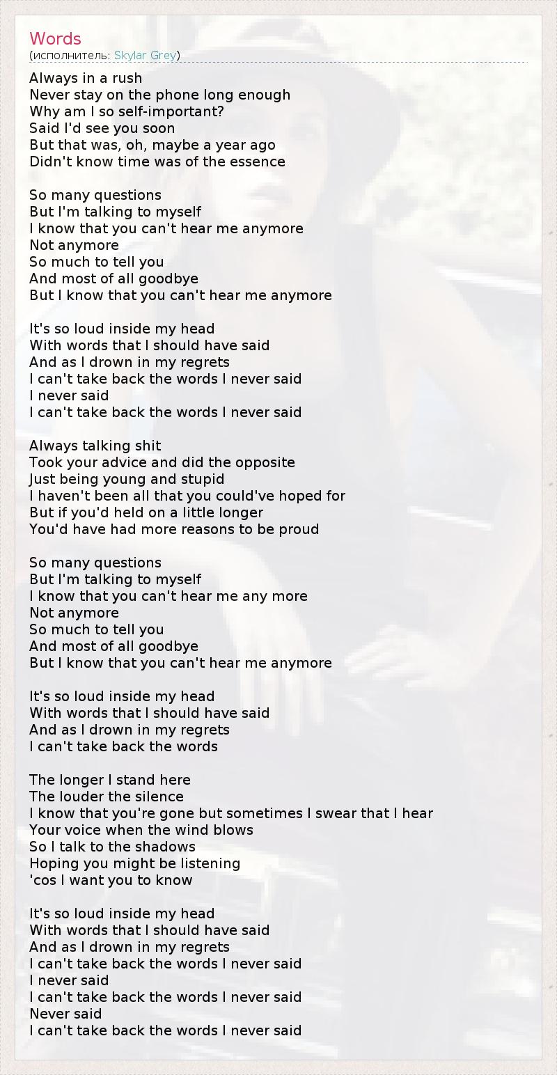 Я не могу взять обратно те слова, что никогда не были произнесены...