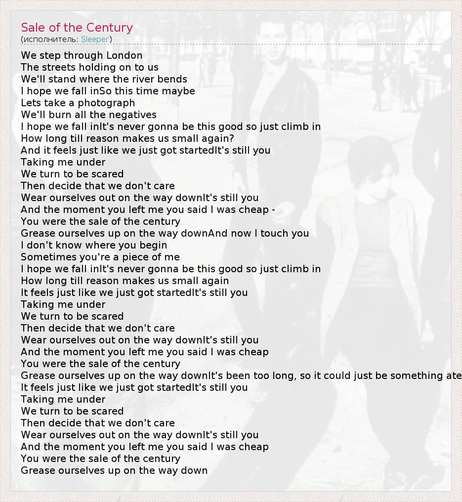 А как ты думаешь, о чем песня "Sale of the Century" ?