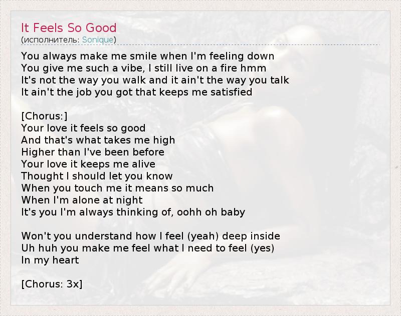 А как ты думаешь, о чем песня "It Feels So Good" ?