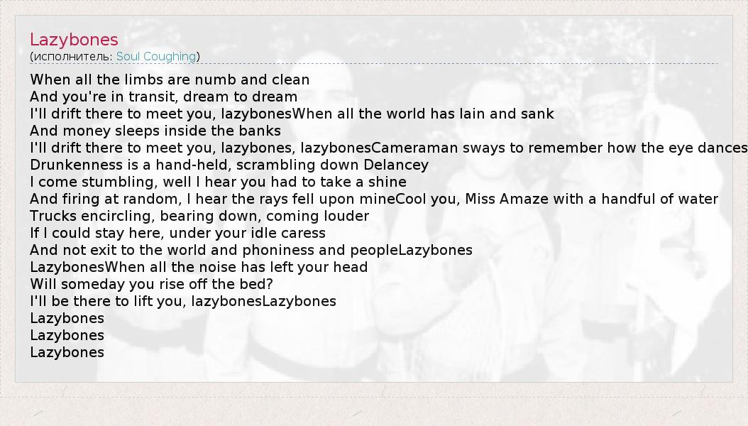 А как ты думаешь, о чем песня "Lazybones" ?