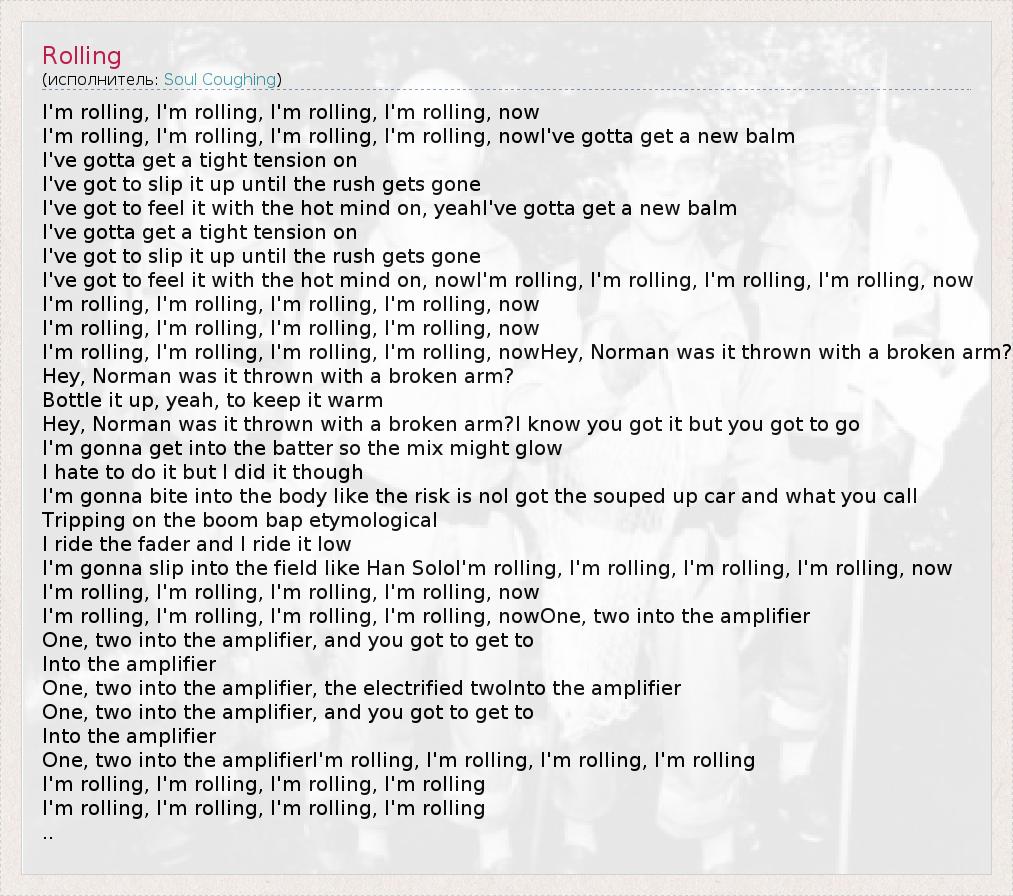 One, two into the amplifierI'm rolling, I'm rolling, I'm rolling, I'm rolling