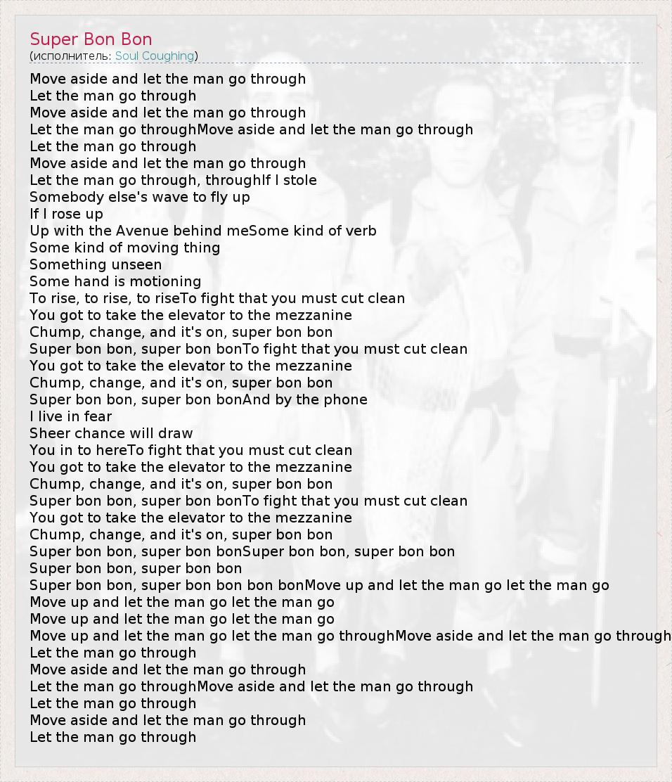 Super bon bon, super bon bon bon bonMove up and let the man go let the man go