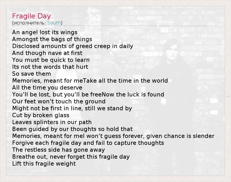 А как ты думаешь, о чем песня "Fragile Day" ?