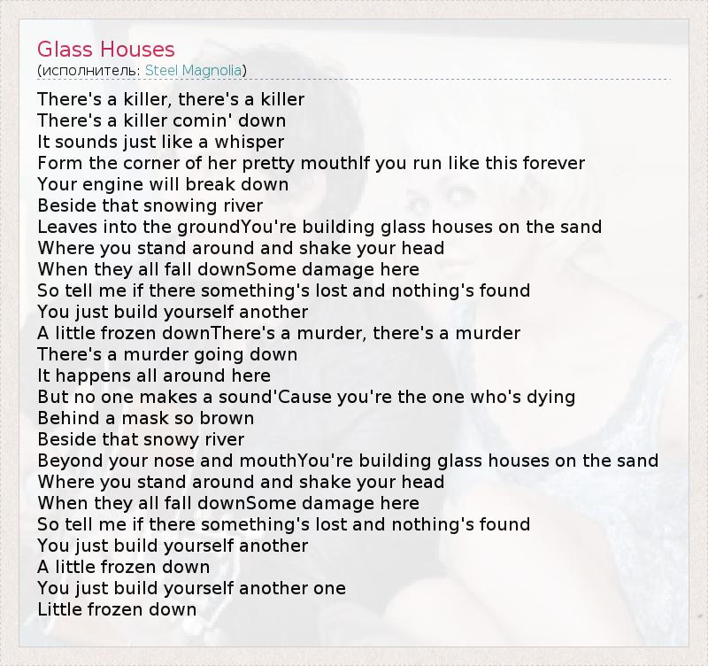 А как ты думаешь, о чем песня "Glass Houses" ?