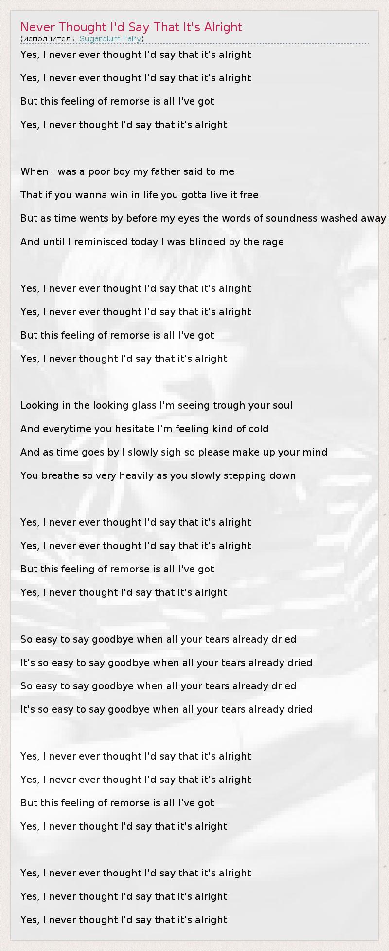 А как ты думаешь, о чем песня "Never Thought I'd Say That It's Alright" ?