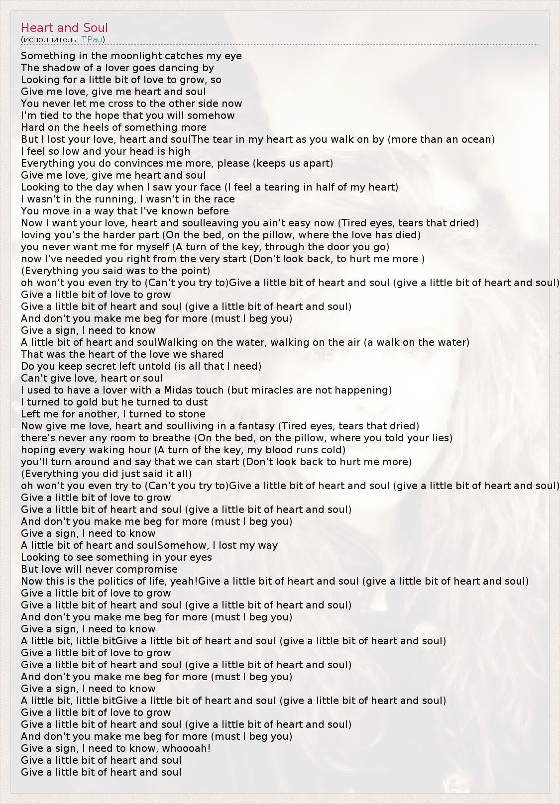 А как ты думаешь, о чем песня "Heart and Soul" ?