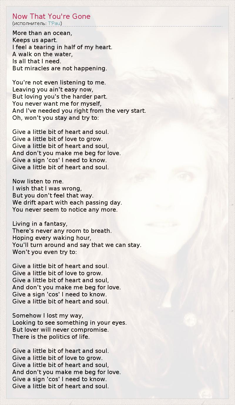 ГлавнаяИсполнителиT'PauNow That You're Gone