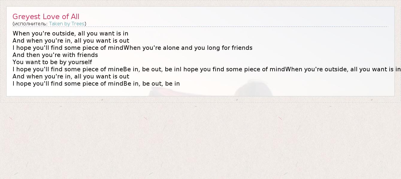 А как ты думаешь, о чем песня "Greyest Love of All" ?