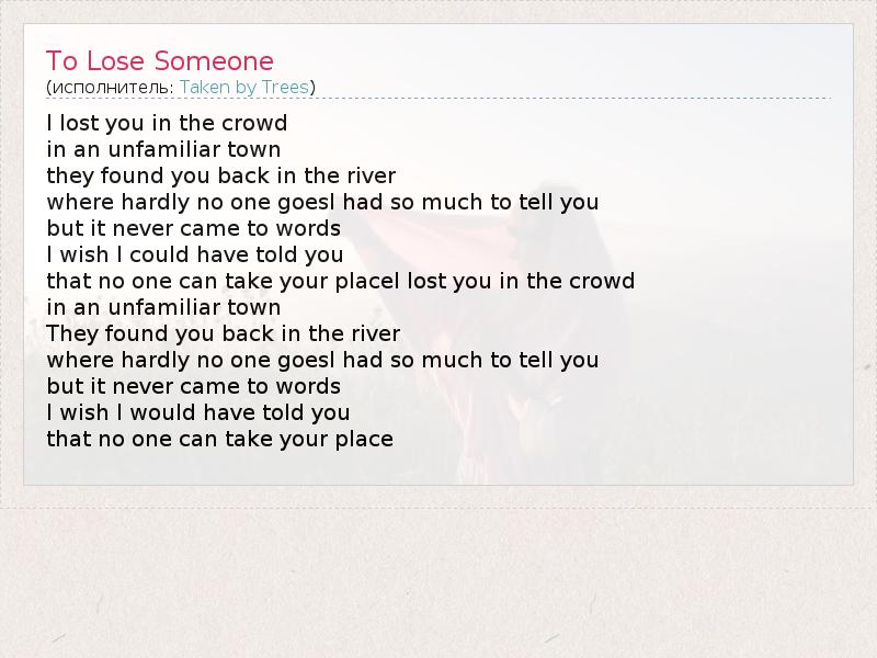 А как ты думаешь, о чем песня "To Lose Someone" ?