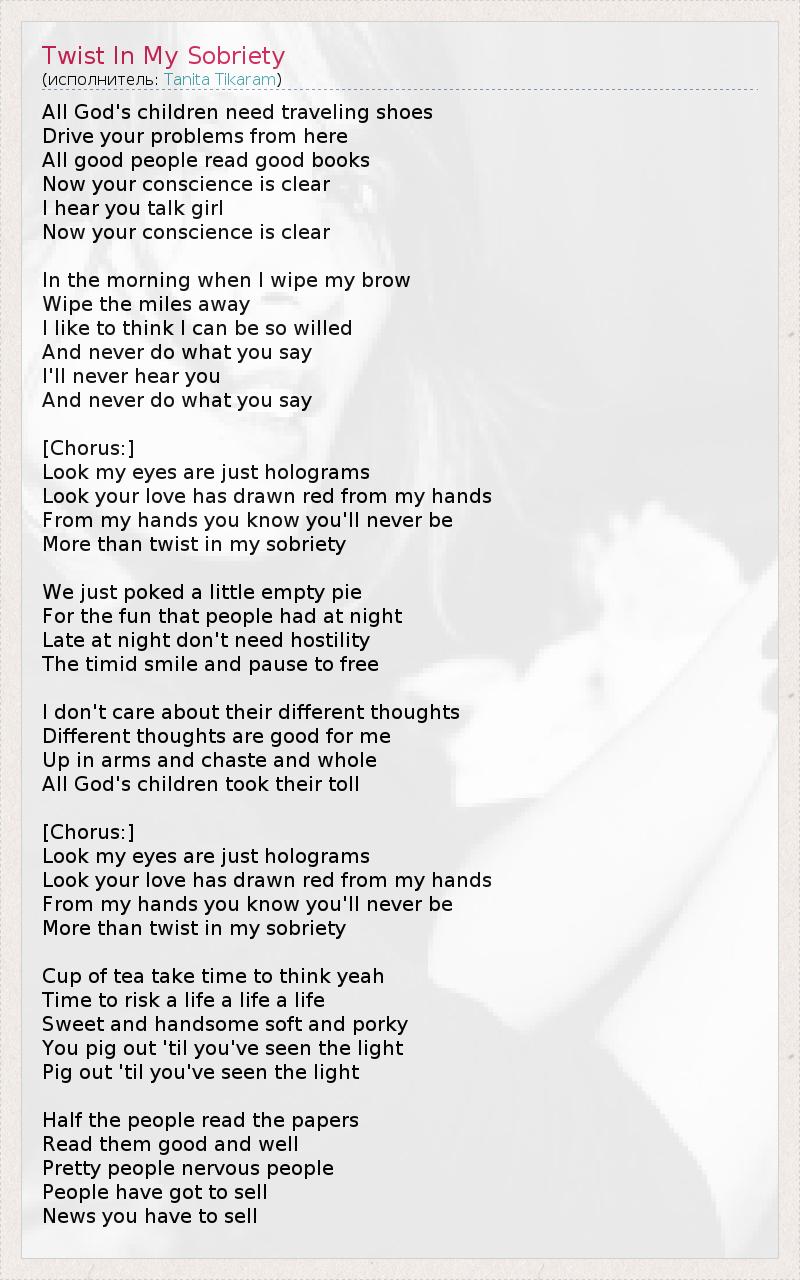 А как ты думаешь, о чем песня "Twist In My Sobriety" ?