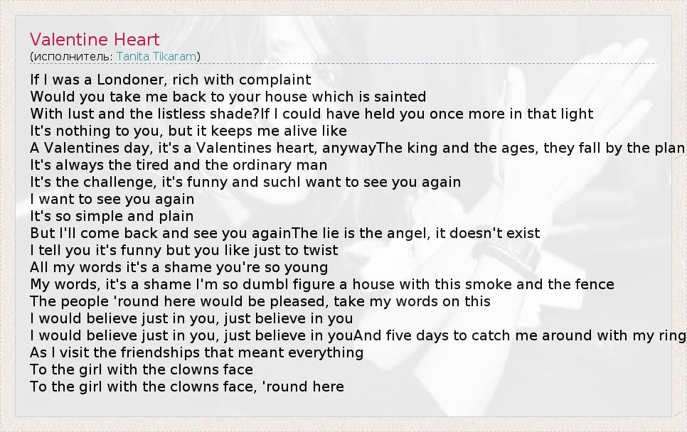 А как ты думаешь, о чем песня "Valentine Heart" ?