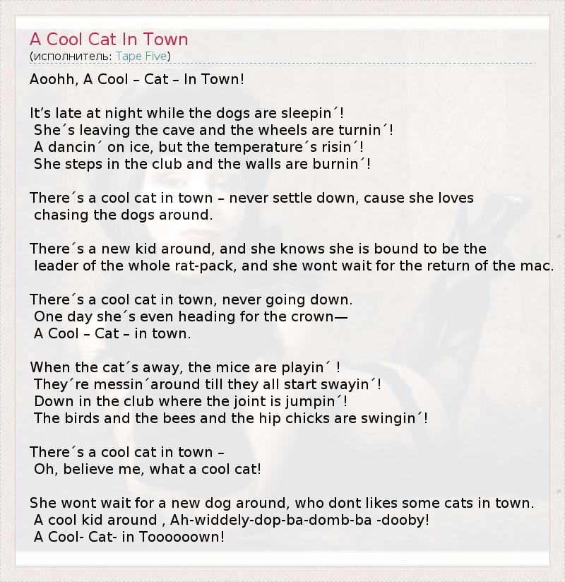 А как ты думаешь, о чем песня "A Cool Cat In Town" ?