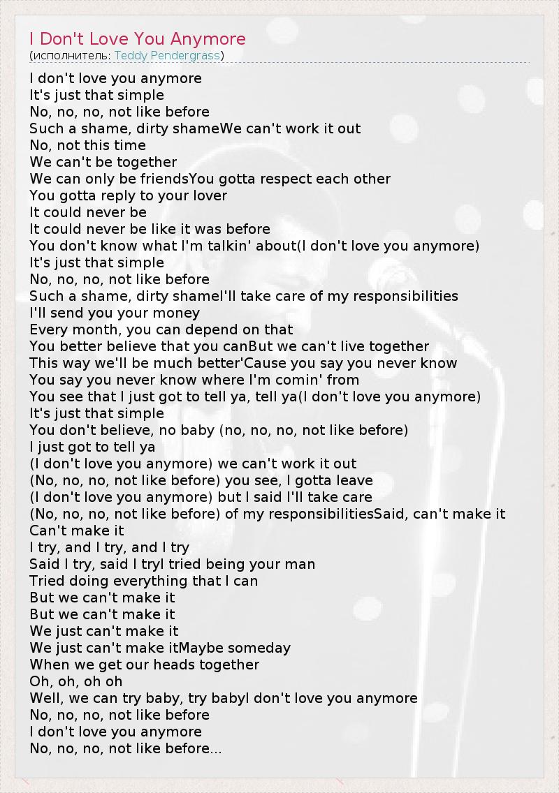 А как ты думаешь, о чем песня "I Don't Love You Anymore" ?