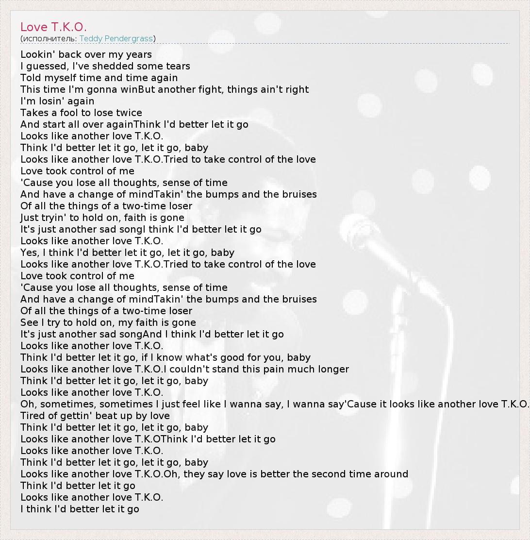 Oh, sometimes, sometimes I just feel like I wanna say, I wanna say'Cause it looks like another love T.K.O.
