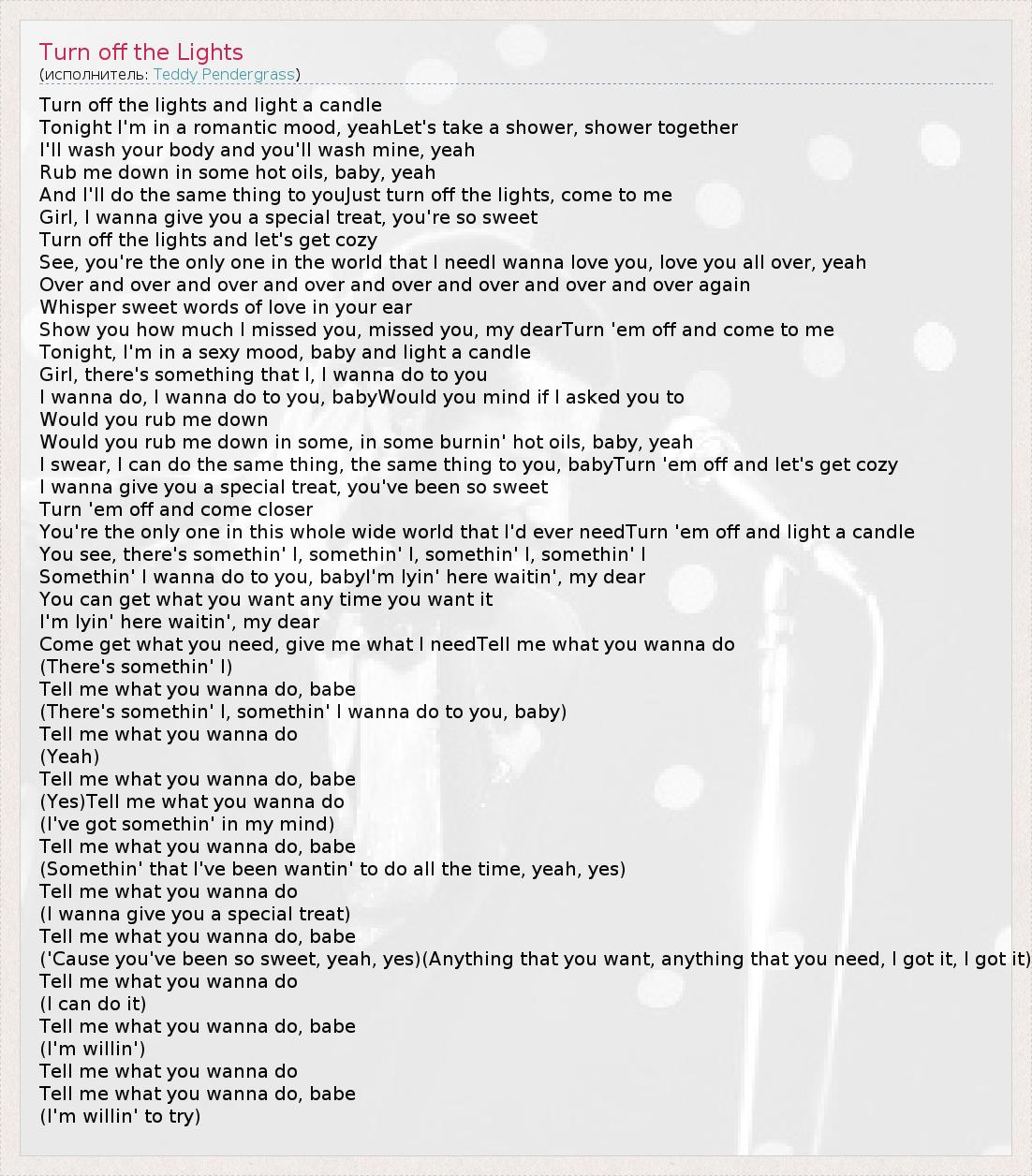 А как ты думаешь, о чем песня "Turn off the Lights" ?