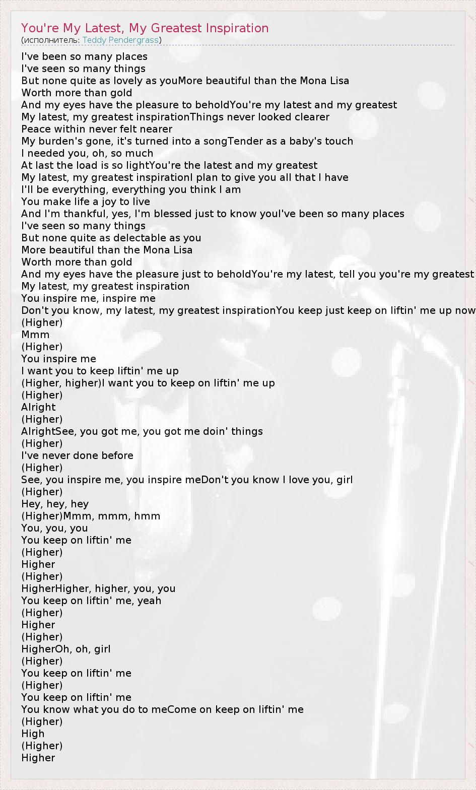 ГлавнаяИсполнителиTeddy PendergrassYou're My Latest, My Greatest Inspiration