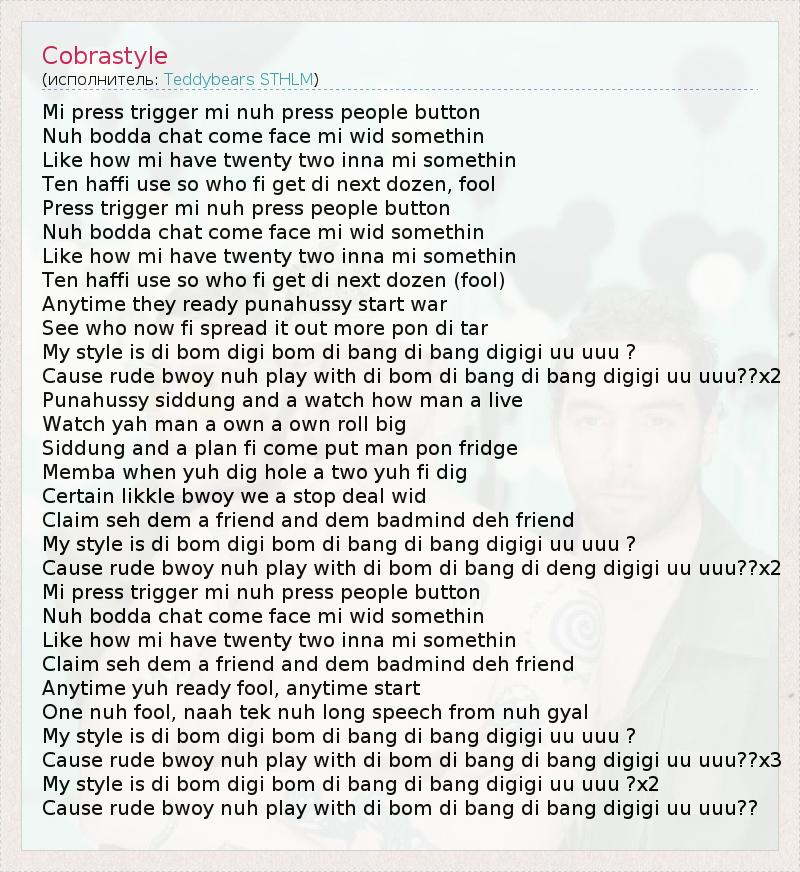А как ты думаешь, о чем песня "Cobrastyle" ?