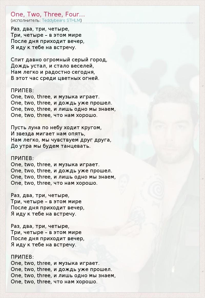 А как ты думаешь, о чем песня "One, Two, Three, Four..." ?