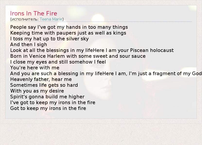 А как ты думаешь, о чем песня "Irons In The Fire" ?