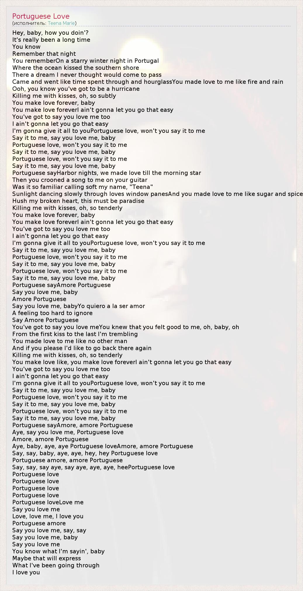А как ты думаешь, о чем песня "Portuguese Love" ?