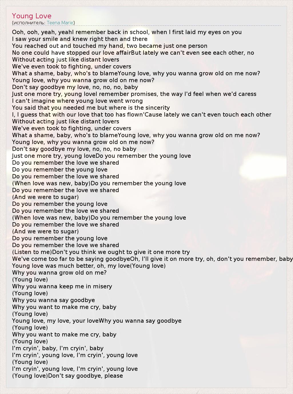 А как ты думаешь, о чем песня "Young Love" ?