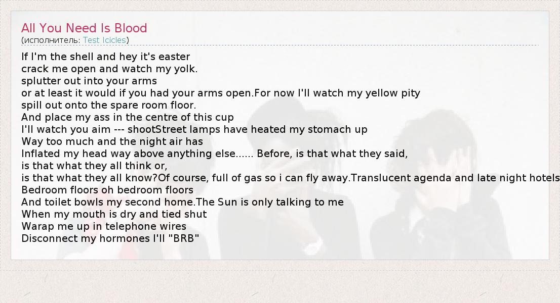 А как ты думаешь, о чем песня "All You Need Is Blood" ?