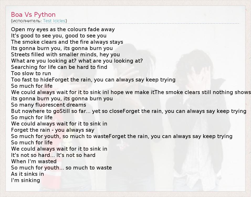 А как ты думаешь, о чем песня "Boa Vs Python" ?