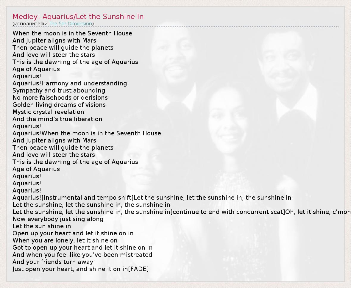 А как ты думаешь, о чем песня "Medley: Aquarius/Let the Sunshine In" ?