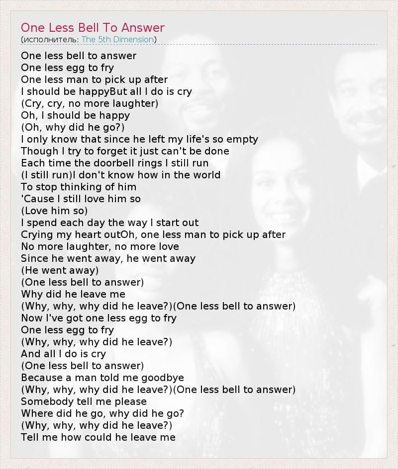 (Why, why, why did he leave?)(One less bell to answer)