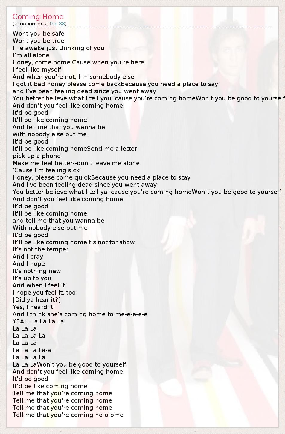 You better believe what I tell ya 'cause you're coming homeWon't you be good to yourself
