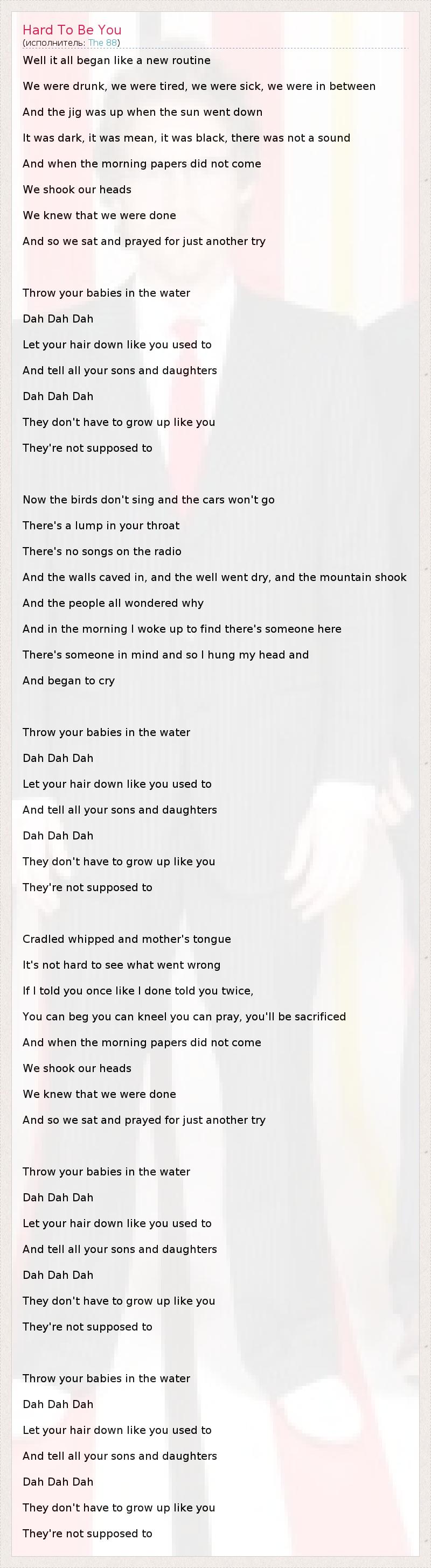 А как ты думаешь, о чем песня "Hard To Be You" ?