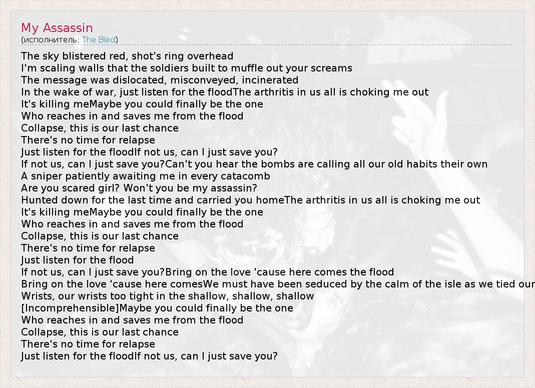 Это интересно:The Bled - металкор группа, образованная под названием "The Radiation Defiance Theory", но впоследствии сменившая его из-за слишком большой длины. Группа собралась в городе Туксон, штат Аризона, в 2001 году, из-за любви к музыке и желания выбраться из родного города. C тех пор они выпустили 4 альбома: "Pass the Flask", "Found In The Flood", "Silent Treatment" и самый последний "Heat Fetish", который вышел... продолжение