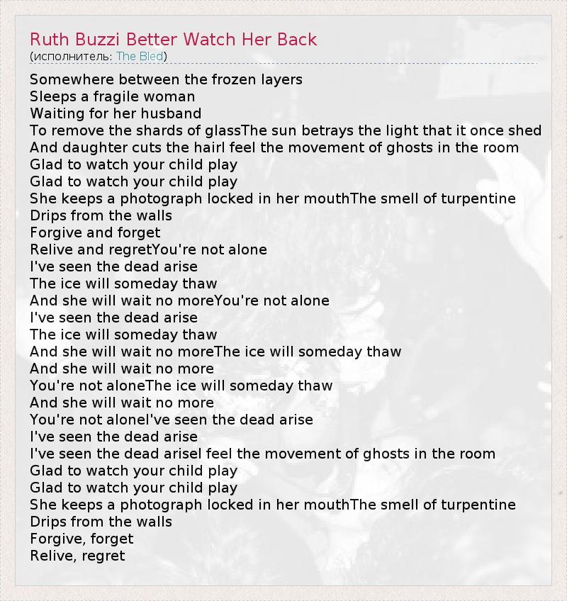 ГлавнаяИсполнителиThe BledRuth Buzzi Better Watch Her Back