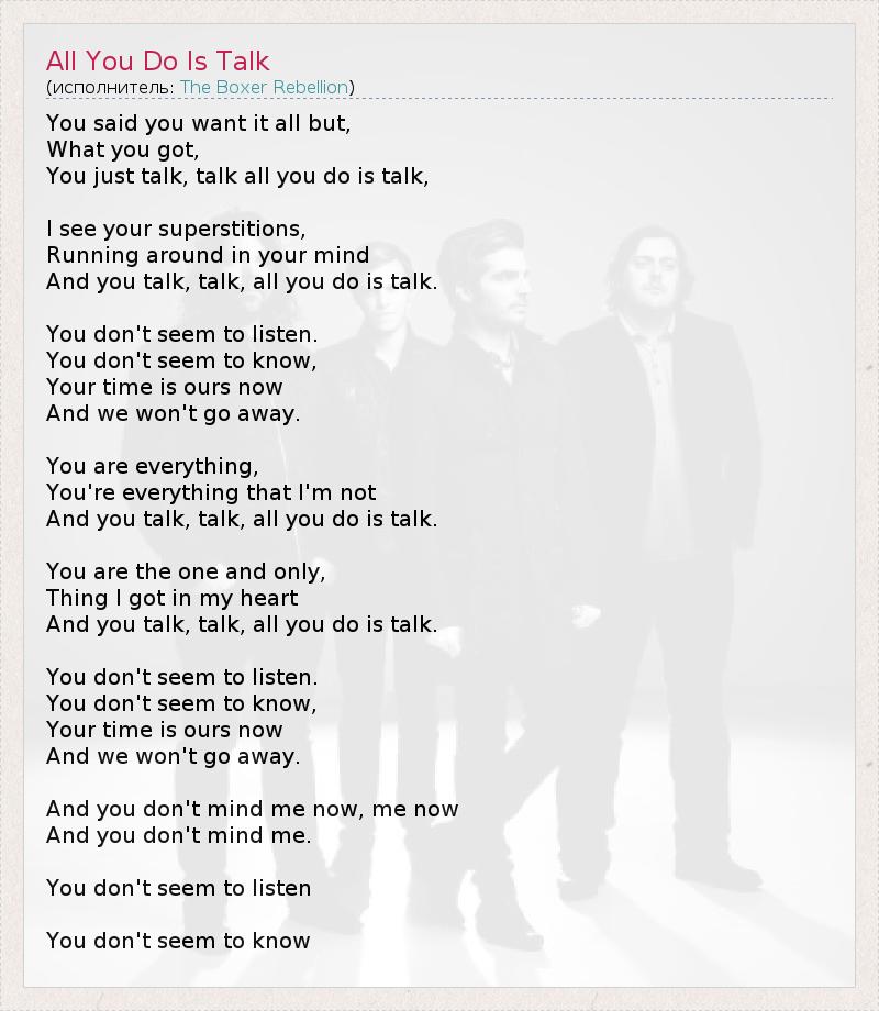 А как ты думаешь, о чем песня "All You Do Is Talk" ?